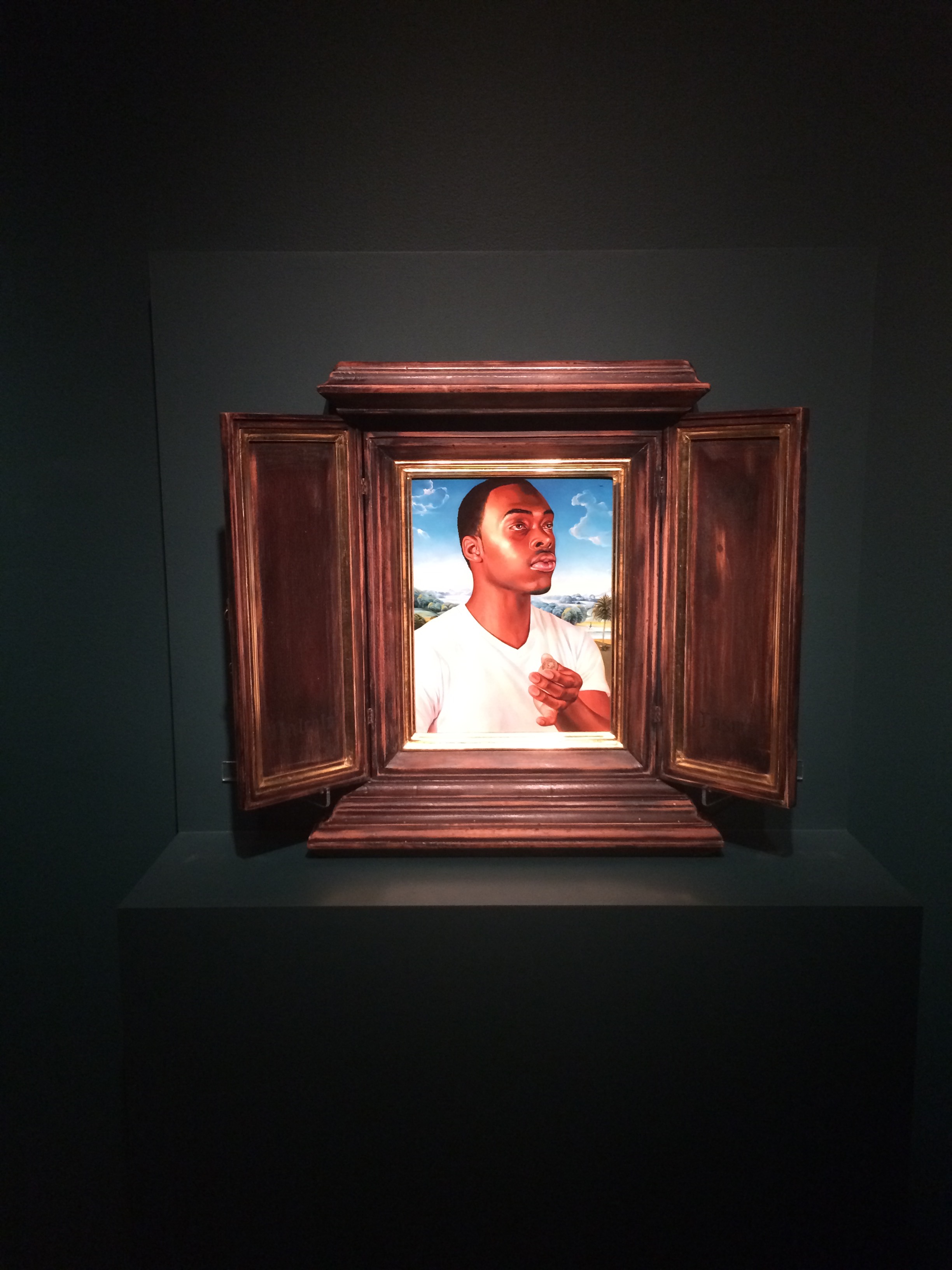 I had the most inspiring visit at the Virginia museum of fine arts today. (I am so blessed to have such a fine museum right here in Richmond ). There is a special exhibition of work from Kehinde Wiley. I literally walked around with my mouth open in awe. His paintings are based on transforming historical portraits, with black people as the main subject and creating a really interesting juxtaposition of colors and context. His work is mainly oil on canvas. His use of color is out of this world. I just want to stand there and stare all day long! And the skin tones… Wow. I am so inspired. Need to do some painting RIGHT NOW 💃💃💃