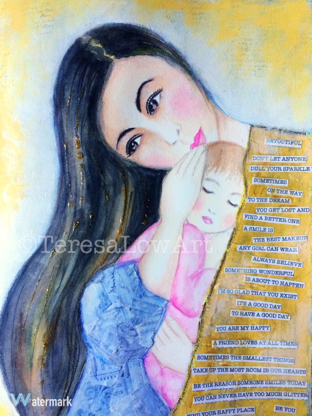 Painted this for my daughter who is turning 13 in a few weeks. I am so proud of the young adult she is turning into. I love her so much that words can’t even begin to describe it. Hence the painting. The cloak contains little wishes I have for her and the painting symbolizes that I will always be there for her. BeYOUtiful my love. ❤️❤️❤️