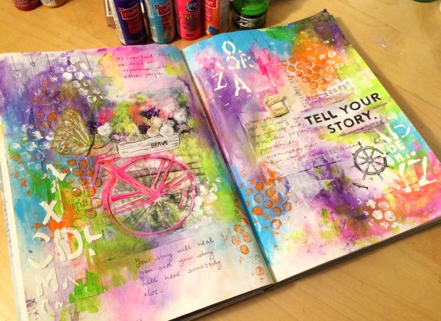 Another fun day playing with mixed media in my altered journal. Given the color palette, I must be dreaming of spring!…