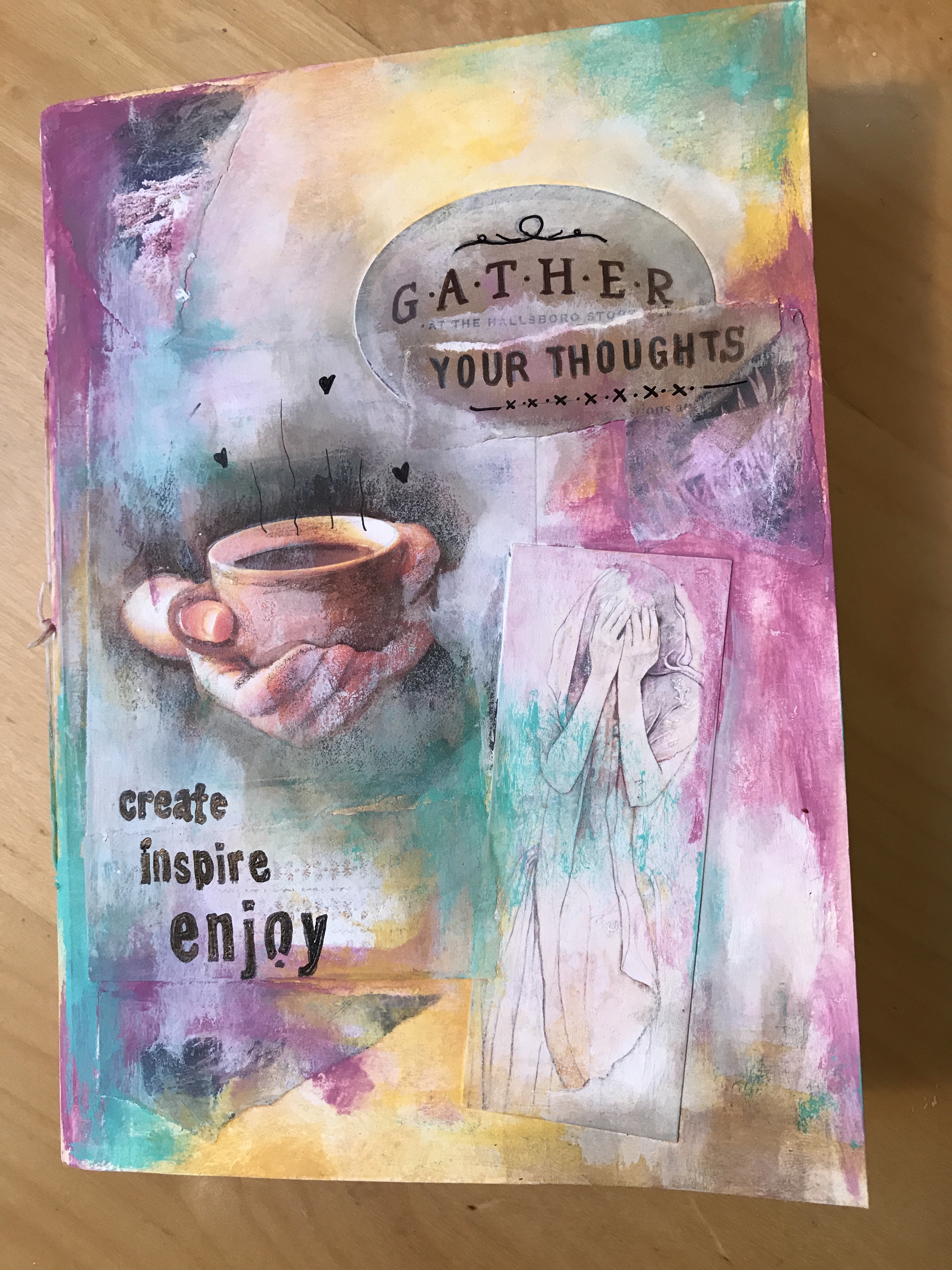 This year, I was able to take Colleen Attara’s stories and treasures class. I have long admired Colleen’s work and was super excited to take her class. She is such a beautiful, authentic and generous human being. She gave all of us so much.. from materials to advice to inspiration. You can’t help falling in love with her. She encouraged us to tell our stories. To be authentic. Check out her website to find out more. Her cards are amazing… https://www.colleenattara.com/ this is an altered book I made in her class. I look forward to filling it with my stories and thoughts…