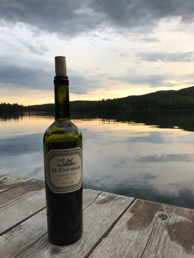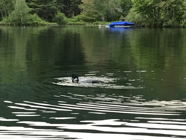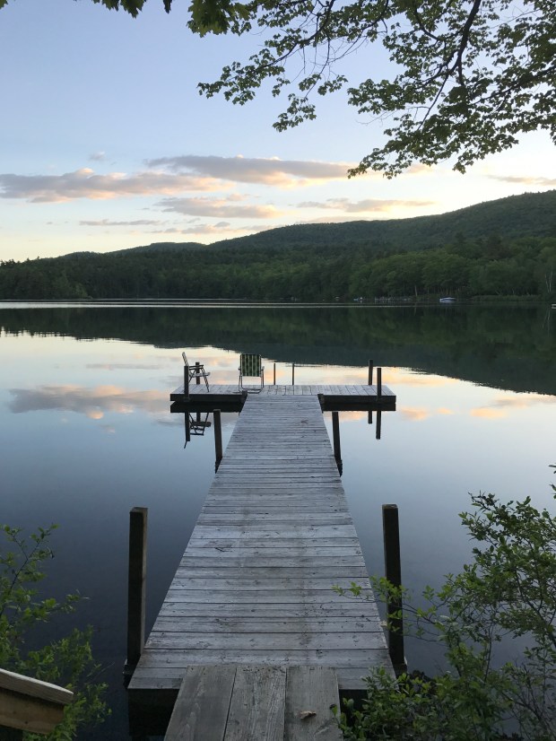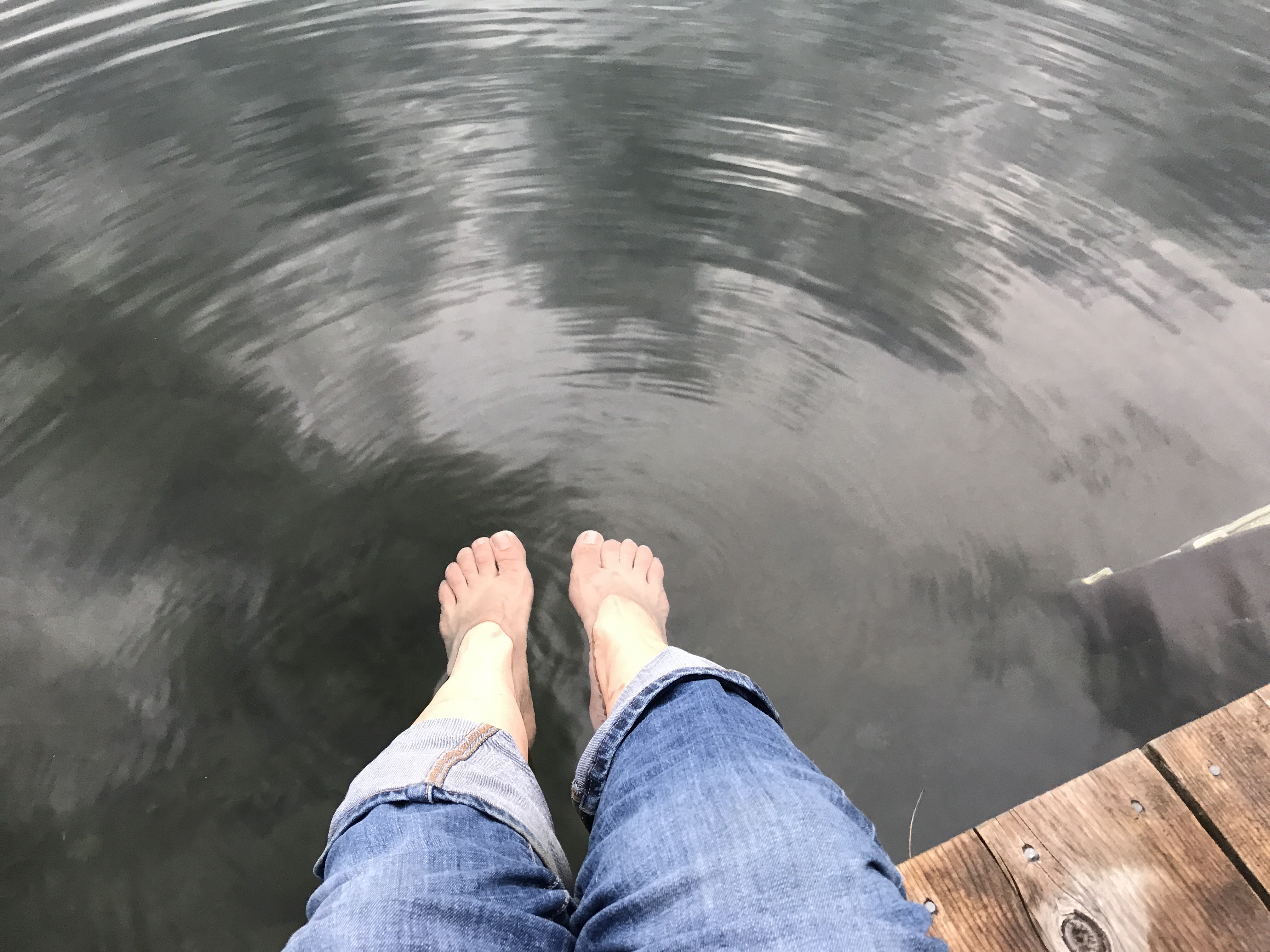 Here is a view of the dock outside our cabin. Every cabin has a dock. This is where we hang out, swim, dip our feet in the lake, look out for loons, knit, draw, drink wine, etc.