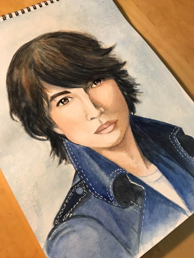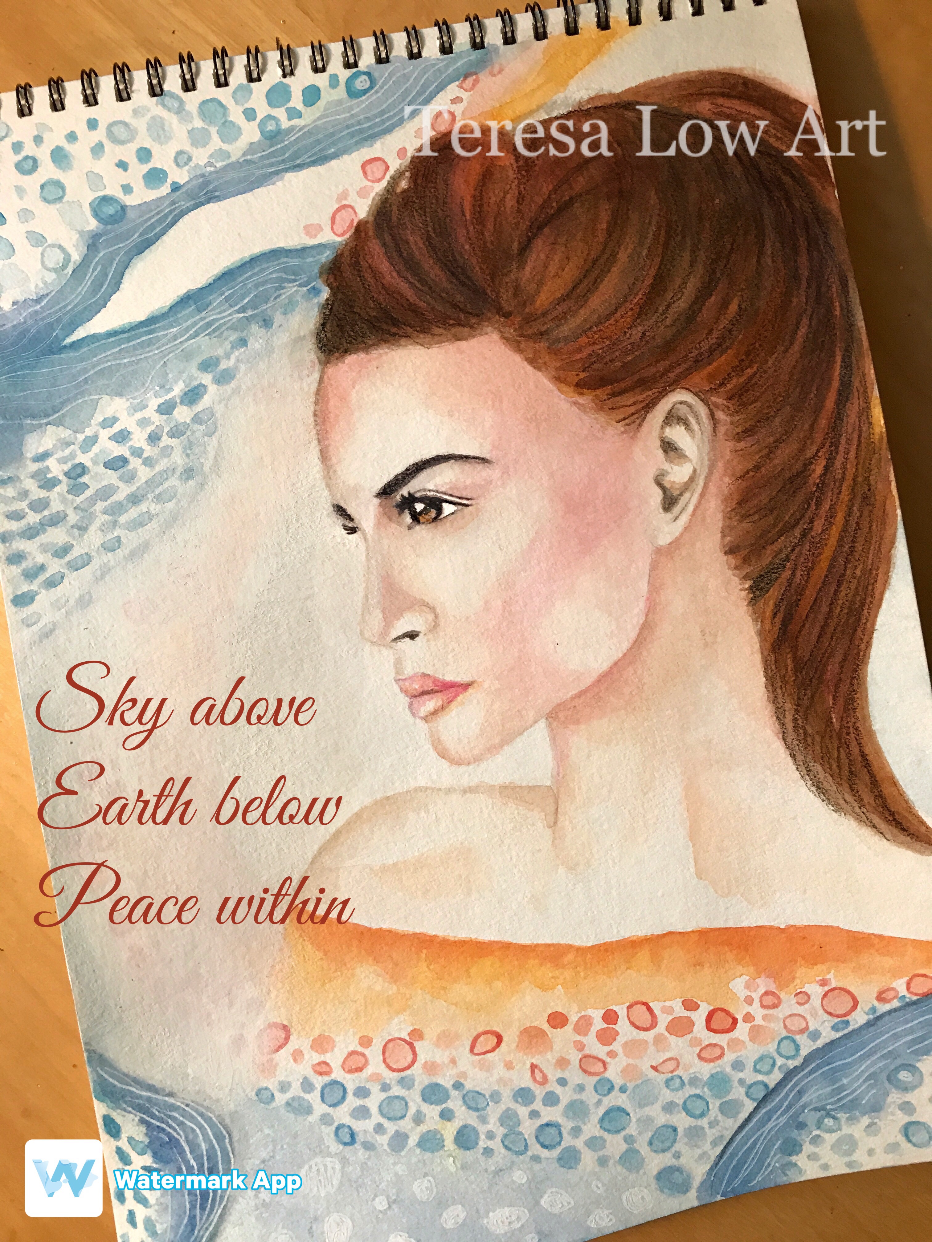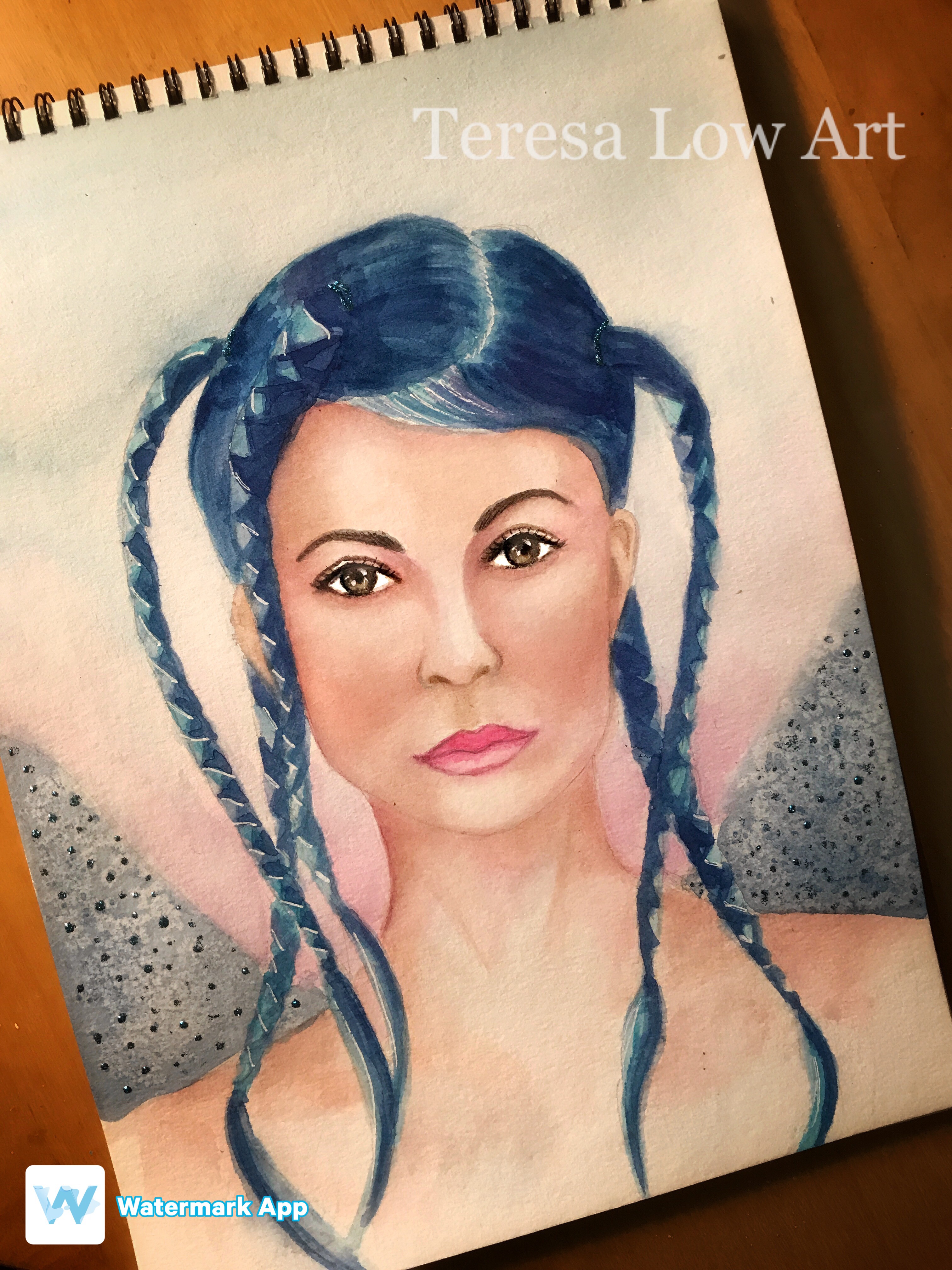She appeared on my art table today. Love her funky braids but unsure why she seems so down. Tried to make her smile but just can’t seem to do it. Guess I just have to let her be. Sometimes a painting just takes on a certain path, I just have to let it be. Hope she will lighten up soon and take off with her beautiful wings and fly. Watercolor painting.