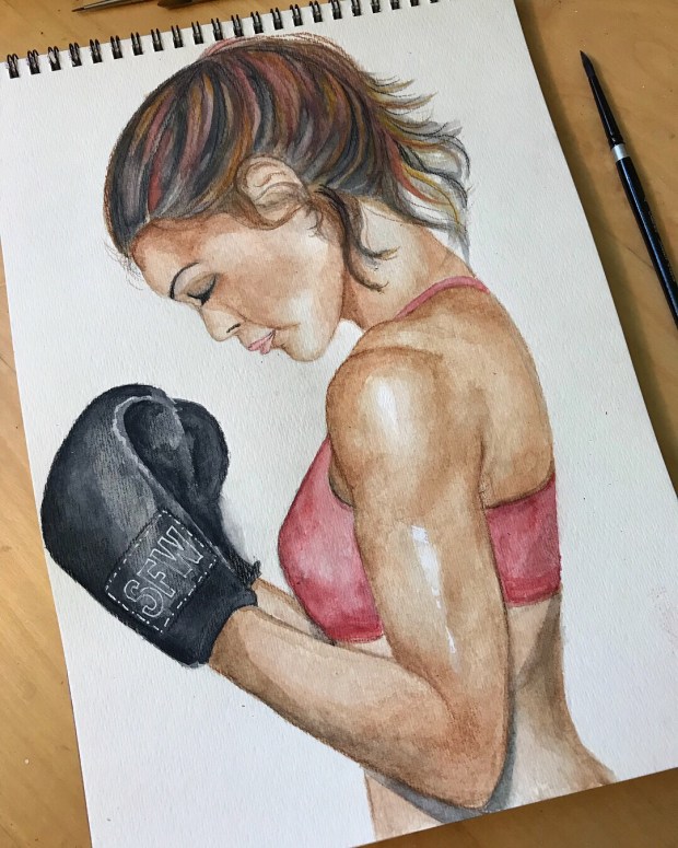 SFW. Strength From Within. I finally finished painting her. Torn between leaving her unfinished versus finished. This is the problem when you like your work in progress too much. I was afraid of ruining my unfinished piece and overworking her. Maybe i did? But I still love her. Combination of watercolor painting and color pencil.
