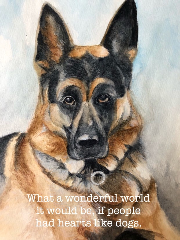 I used to be afraid of dogs. Was chased by many stray dogs. I think they smelled fear😳 Since volunteering at a local dog shelter, I have come to realize why people say dogs are men’s best friend. Especially the big dogs.. they are the sweetest. Besides painting human faces, dogs are now my next favorite thing to paint. I love this dog’s eyes. So innocent and goofy… and yes i wish humans have hearts like dogs. The world would be a much better place…