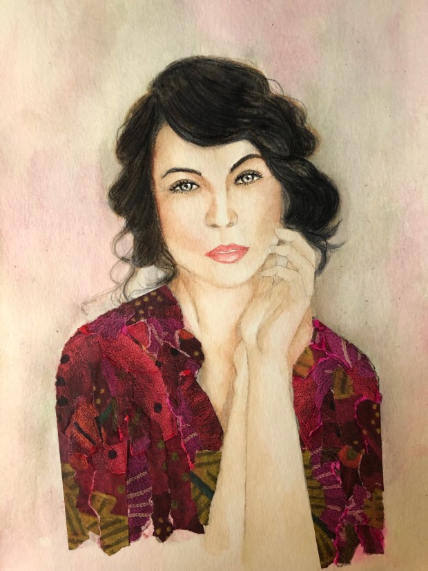 Sometimes you just need to start over. And on better paper… I painted the second lady on a weird paper pad from strathmore. Really did not like what I saw and could not fix her. Decided to start over on another paper pad. This time so much better. Sometimes it is good to let it go and start over. Like in art and in life. Watercolor and collage for her blouse.