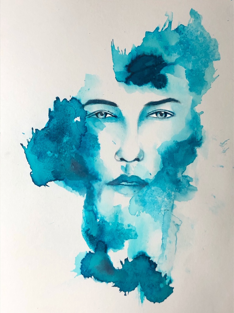 I had the most incredulous and incredible experience on Facebook. I posted this painting a few days ago. It started with playing with inks on a page and I did not like how it turned out. So I left it aside for weeks. A few days ago, I decided to pick it up and painted a face on it. And added some glass shattering. Not sure why. Maybe it was how I was feeling. My son was coming home from singapore and I was worried. I posted to different art groups on Facebook simply saying some days this is how I feel. And asked if anyone can think of a title for it.