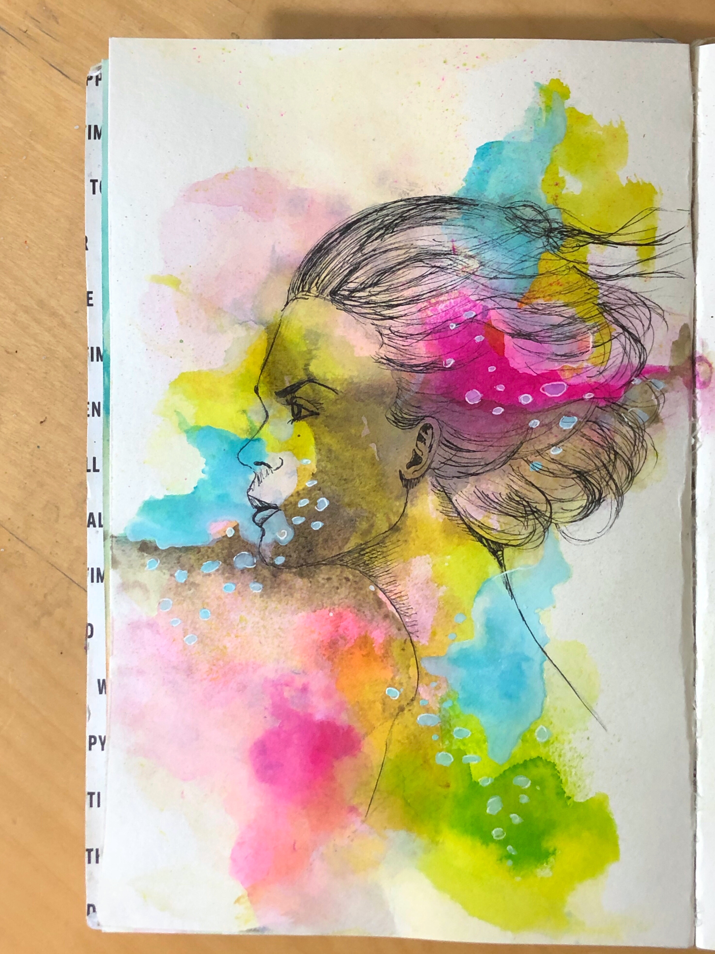 Added some ink on it. And made it worse😱 when that happens, I throw all caution to the wind. I have nothing to lose. Started scribbling everything that stressed me out onto the page. It was cathartic to do that by the way.