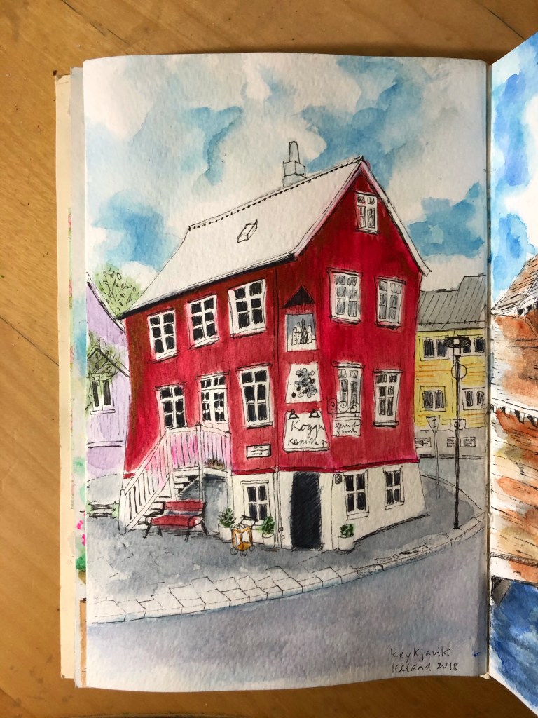 Reykjavik Iceland 2018. One of the best family vacations we have ever taken. Everything about Iceland is beautiful. Love this red building. The buildings there were all so colorful. A visual feast😊 my sketchbook is filling up!