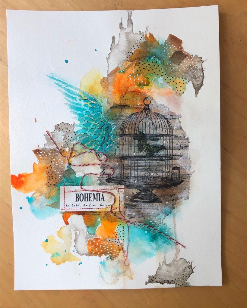 Sometimes you just have to play with inks, colors, doodles, stencils, modeling paste and see where it takes you. Take flight my friends 😘