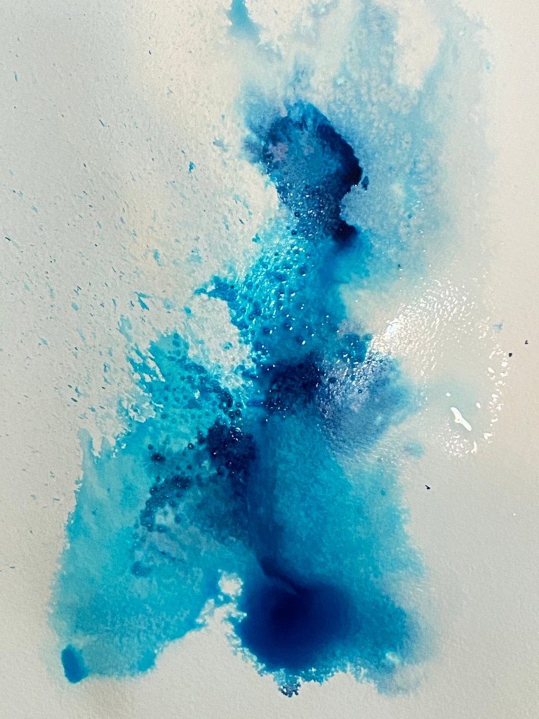 So glad it is finally the weekend. Been a brutal and stressful week. And all the noise about the upcoming election week and people buying guns… my head is spinning. Overwhelmed. I turn to art. This piece started with splashes of ink, messy, with no rhyme or reason. Just splashes. Dark and messy. Like life. As I played with the flowing water and ink, I am feeling the sun again. The sun always shine. And I find myself adding more lightness to the piece. I can still see and feel the darkness beneath but light is emerging from it. I add bubbles. No reason. Just because it makes me smile. Feels lighter. Bubbles float away.. taking away the stress and darkness.