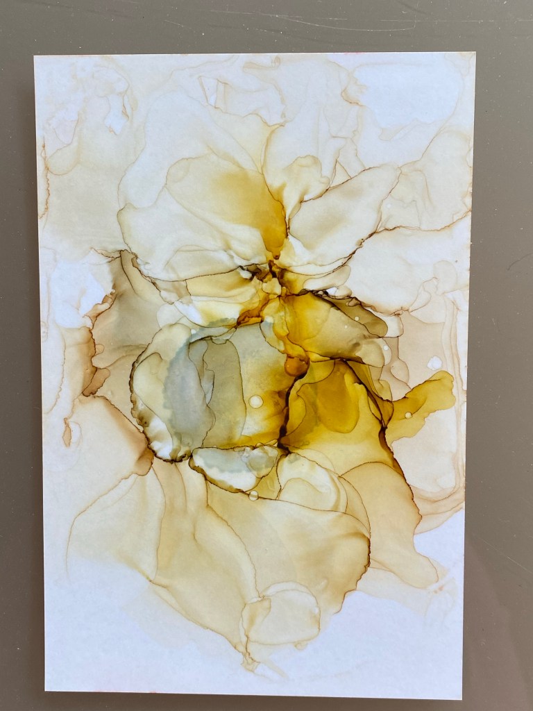 I have seen beautiful alcohol ink art on the web and admired the translucency and abstract nature of it. Reminded me of watercolor.