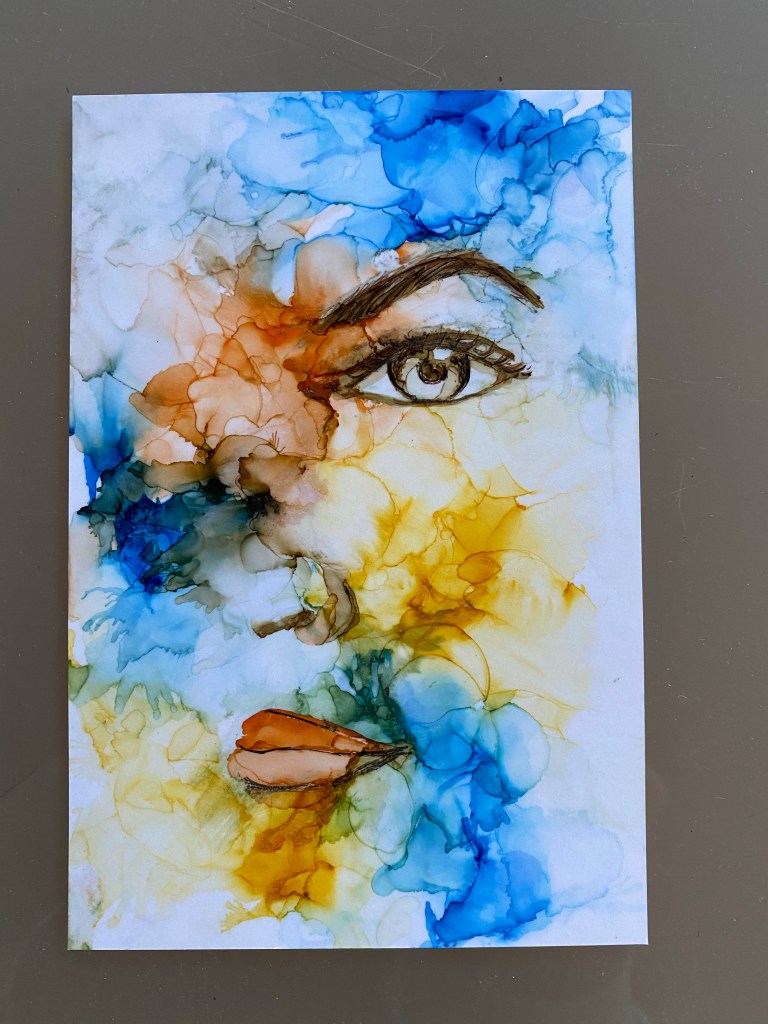I love painting faces and will always go back to that. But I also like to dabble and learn new things. Keeps me inspired. And often it would be inspired by something. This time, I saw the work of Kate Morgan online and was blown away by how beautiful it is. Check her out if you have not https://www.katemorgan.art/workshops. And while chatting with her, she sent me a video from an alcohol ink artist, Zimino Art https://youtu.be/kJlEe0lzV8M and I WAS HOOKED!!!!! I love how beautiful and soft the alcohol ink turned out.