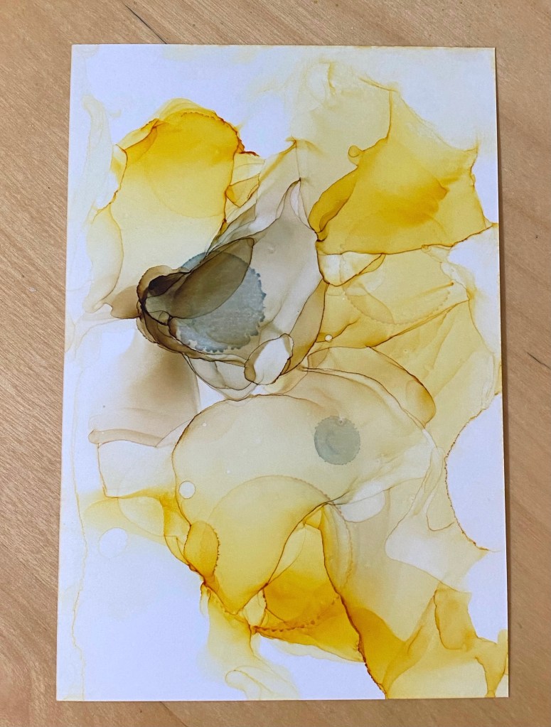 Decided to play with it and I have not been able to stop playing! I love the unexpected nature of it, the utter lack of control. Letting the ink and isopropyl alcohol take me to new discoveries.
