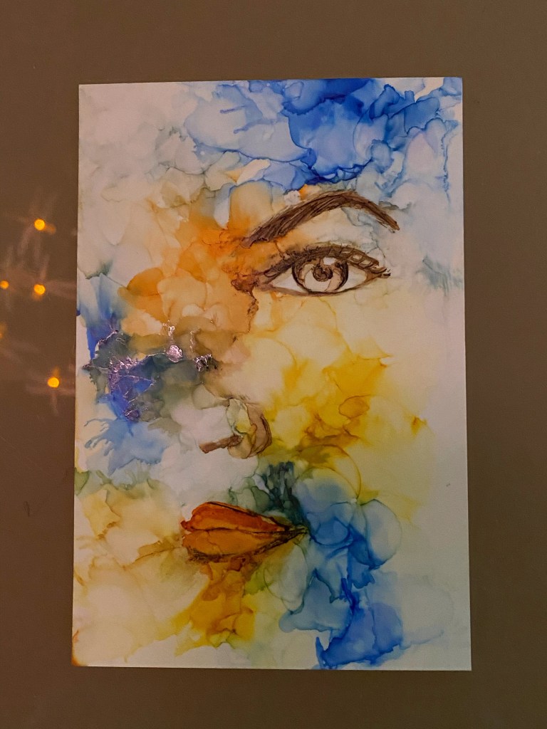 So this is my process. Let me know if you have any way to paint a face with alcohol ink! I would love to learn other ways!