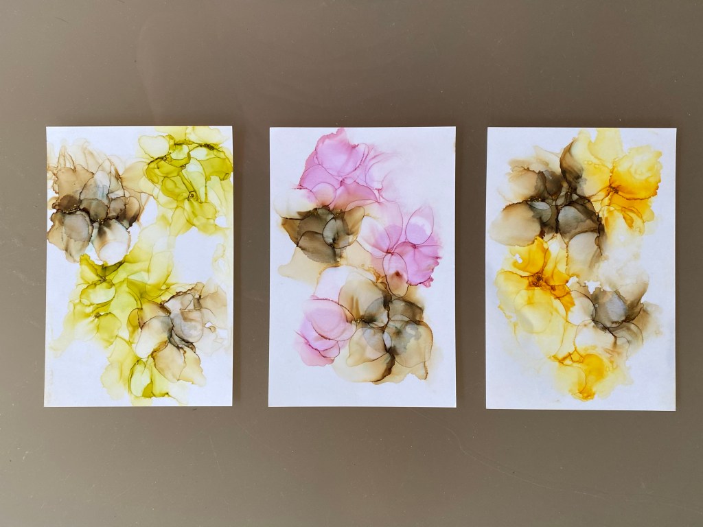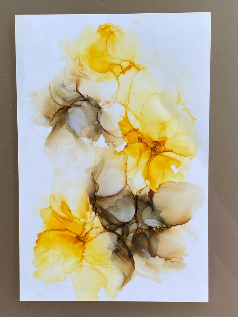More alcohol ink play. Need to buy a photo album to keep all these pieces of alcohol ink art. It was not easy to find it anywhere! One young associate from Target looked at me in bewilderment when I asked him where can I find photo albums…😂
