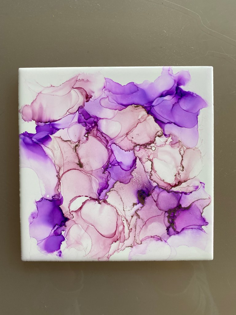 When I play with alcohol ink, I get lost… seeing how the ink flow, how it responds to the air from my hair dryer…. I get lost in my thoughts…