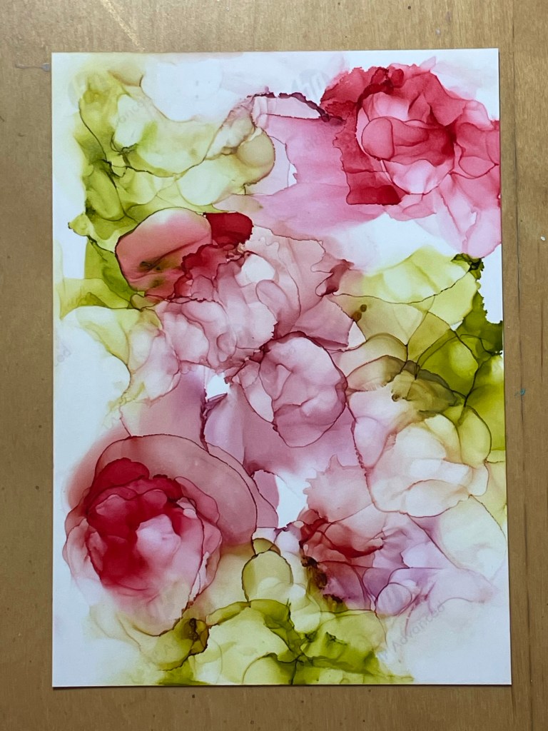 It’s that time again!!! Cleaned my deck, enjoyed an afternoon of playing with alcohol ink again, thinking of all the flowers blooming around me as I move the ink around…