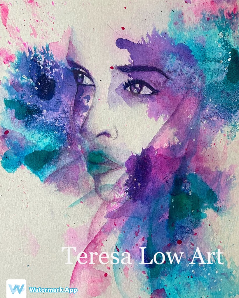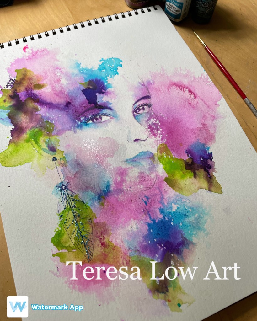 Really enjoyed making this piece. Started with pinks, purples and blues. It is only when I added the green that it popped and made me smile. Yes I love this piece. She is ready for the world and embraces everything about herself, imperfection and all. Here’s looking at you kid😉